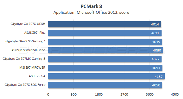 - Futuremark PCMark 8 (в комплексе с Microsoft Office 2013 SP1 Standard);