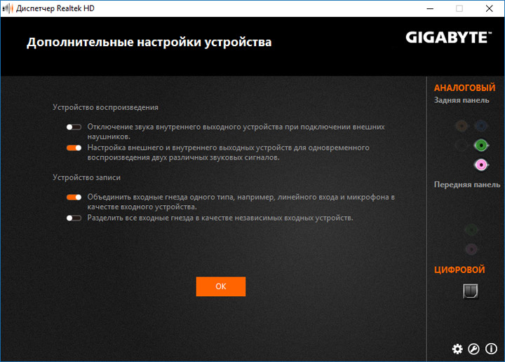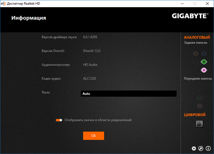 Звук основан на старшем кодеке от Realtek, потому первоначальная наладка производится при участии их фирменного конфигуратора. Ввиду отсутствия банального ОУ, говорить об сногшибательном звучании не приходится. Основной чертой этой платы является мягкость подачи (с начальными настройками). Нет внятности позиционирования, любители динамических композиций будут расстроены.