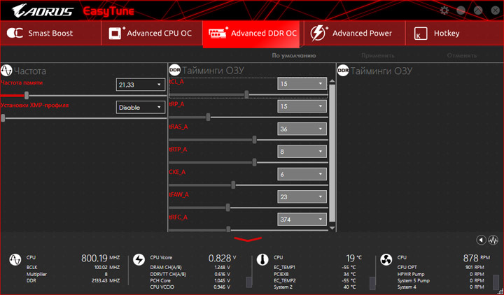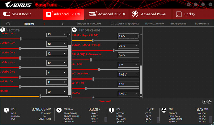 EasyTune наиболее известный и, думаю, полезный инструмент. Здесь можно изучать параметры и даже менять их «на лету», основные напряжения регулируются отсюда без проблем, как и множители ЦП. Модифицированная переменная удобно обозначается другим оттенком (до момента её применения). Есть и способы автоматического разгона, отличающиеся от набора в UEFI. Рассмотрим их чуть позже.