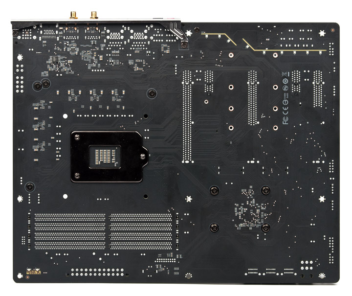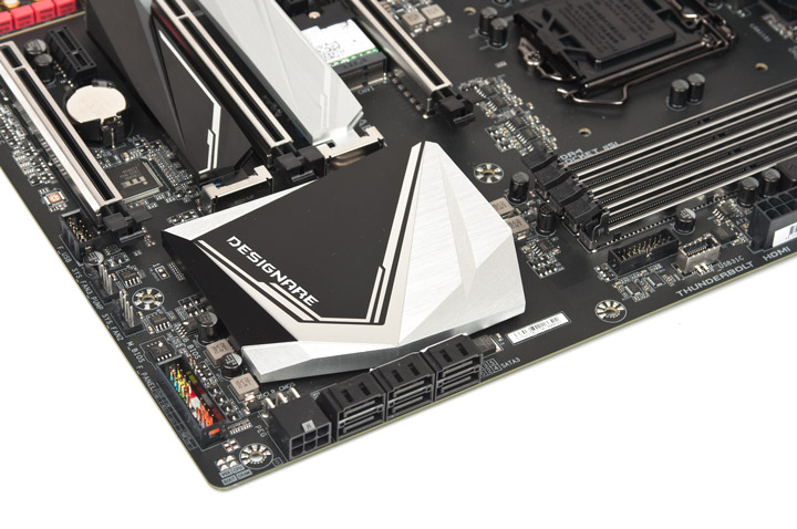 Задняя панель примечательна сразу двумя портами Thunderbolt последнего поколения. И без них о наполнении можно говорить в положительном ключе, в целом же оно фактически образцовое. Возможно, для идеала не хватает кнопки по сбросу настроек CMOS, но, как мы помним, продукт не позиционируется как инструмент для экспериментов с оверклокингом, потому моя общая оценка — замечательно.