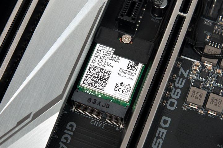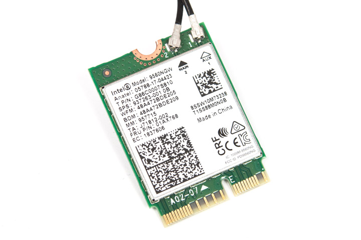 Верхнее гнездо M.2 реализует интерфейс CNVi, там находится предустановленный адаптер беспроводный сетей от Intel.