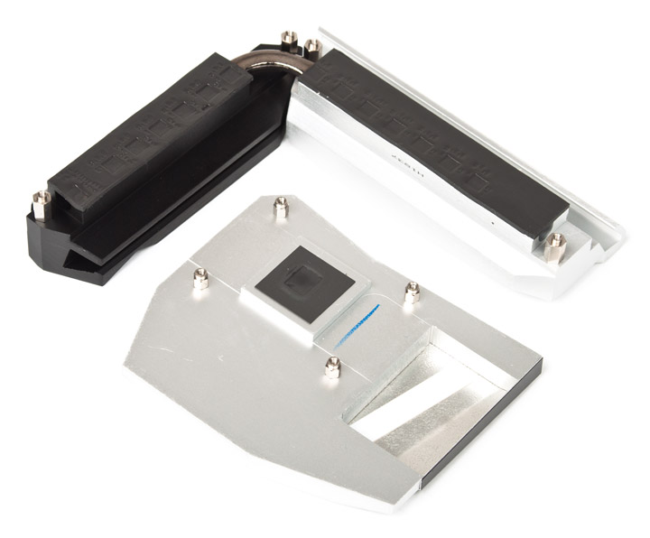 Без акцентов на вторичном обошлись и на тыльной, тут внимание сосредоточено исключительно на «железных» аспектах. Изучая надписи, можно выделить наличие тепловой трубки в системе охлаждения узла питания ЦП.