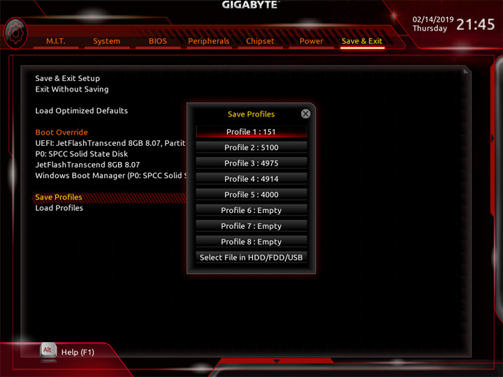 В наличии восемь профилей под хранение настроек системы, призываю ими пользоваться почаще, особенно в ходе экспериментов. Также можно хранить параметры и на внешнем накопителе (в безлимитном количестве).