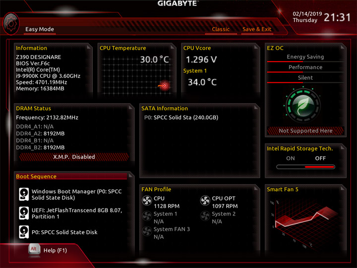 Easy Mode предназначен для малоподготовленных пользователей. Здесь можно: активировать XMP, выбрать нужное загрузочное устройство, попасть в среду для наладки работы охладителей (о ней чуть позже).