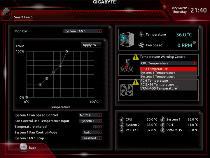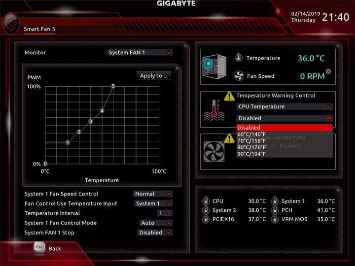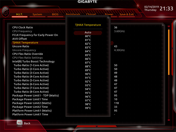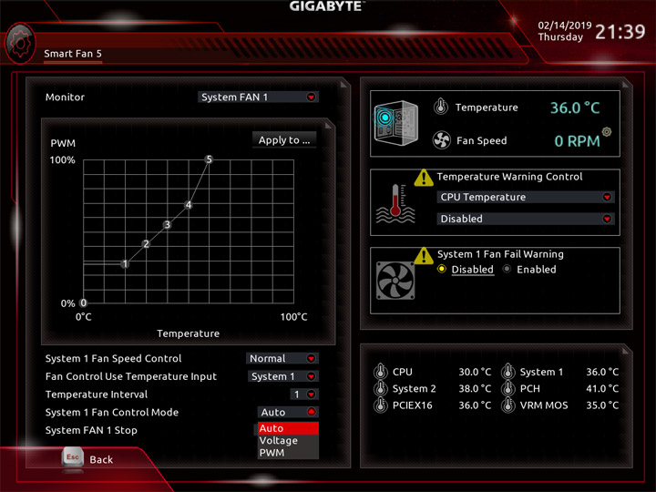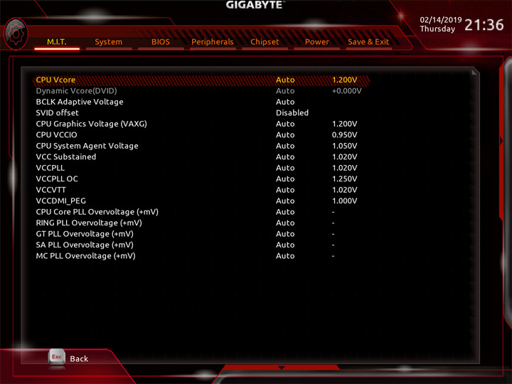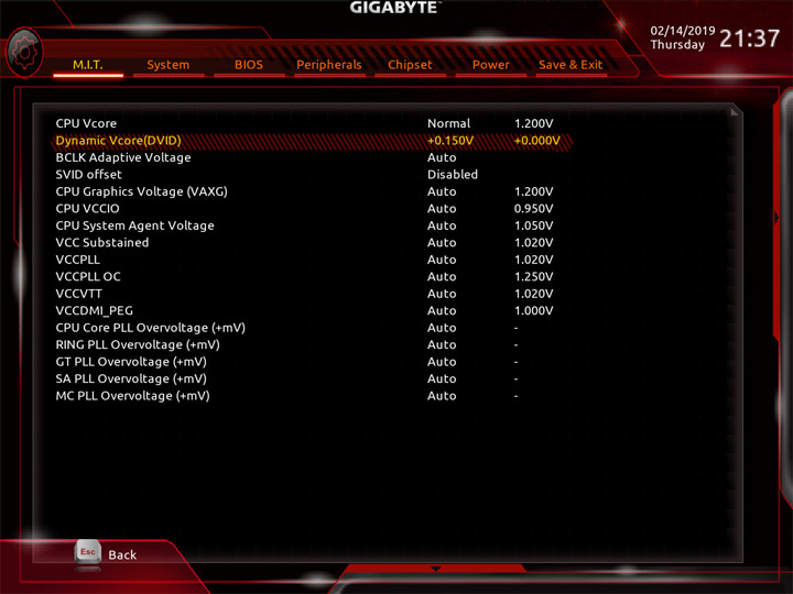 Особо некомфортно себя чувствовать в меню по управлению напряжениями. Есть множество вложенных страниц, при работе на одной из них достаточно трудно понять, как вернуться назад и сколько (лишних) шагов придётся сделать для доступа к другим пунктам. Общее их число невелико и мне не понятно зачем их делить вообще. Главное — есть обильное число профилей LLC. Напряжение ЦП можно указать в явном виде или задать уровень компенсации (offset). Дополнительно удивила система мониторинга за текущими напряжениями — наблюдения за достаточно важным CPU IO отсутствует, поэтому придётся полностью довериться установкам.