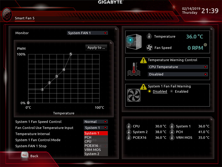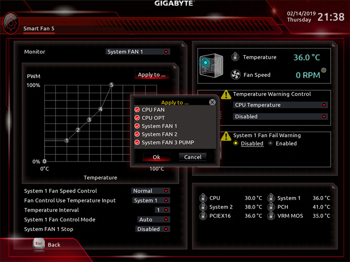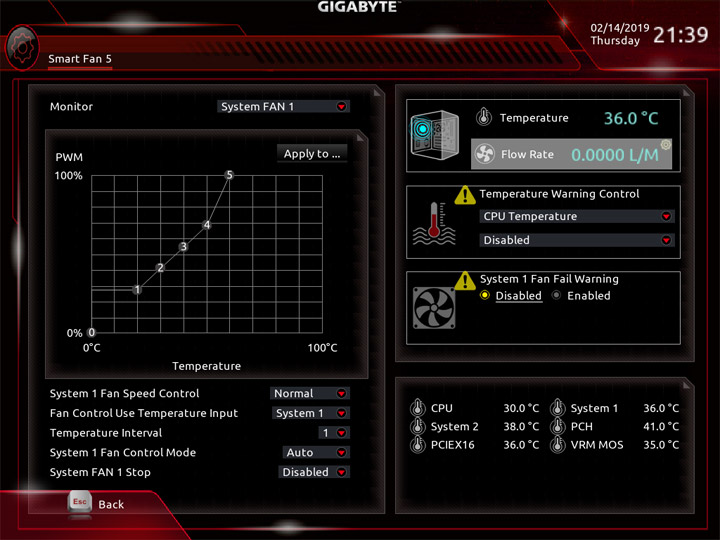 На плате есть шесть датчиков температуры, особо ценный — с участка VRM. Температурные показатели можно использовать в качестве отправной точки для работы охладителей, которых, напомню, здесь допускается пять единиц. Датчик оборотов (тахометр) можно переключить в режим отчёта о потоке из состава СЖО.