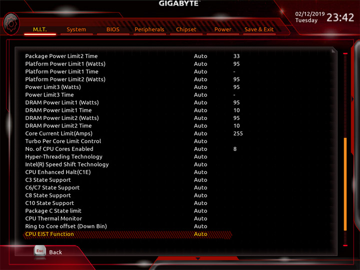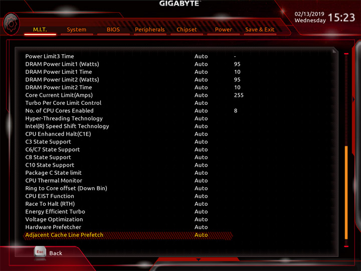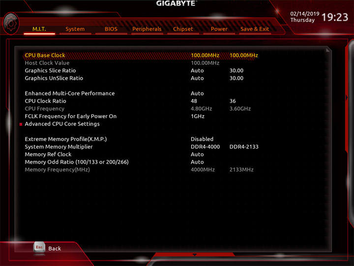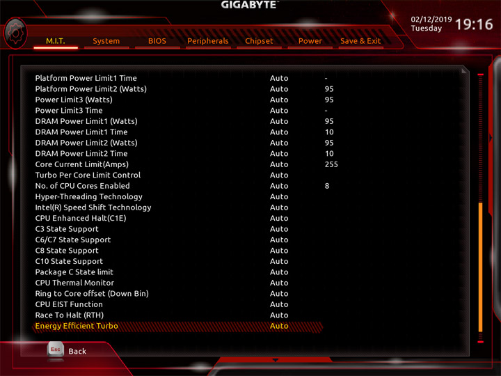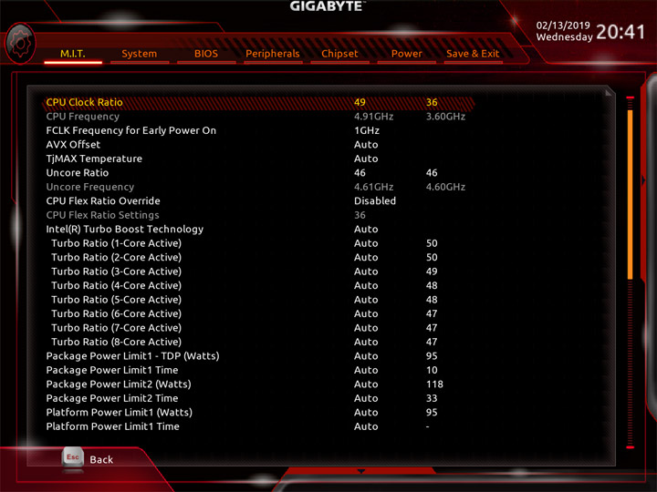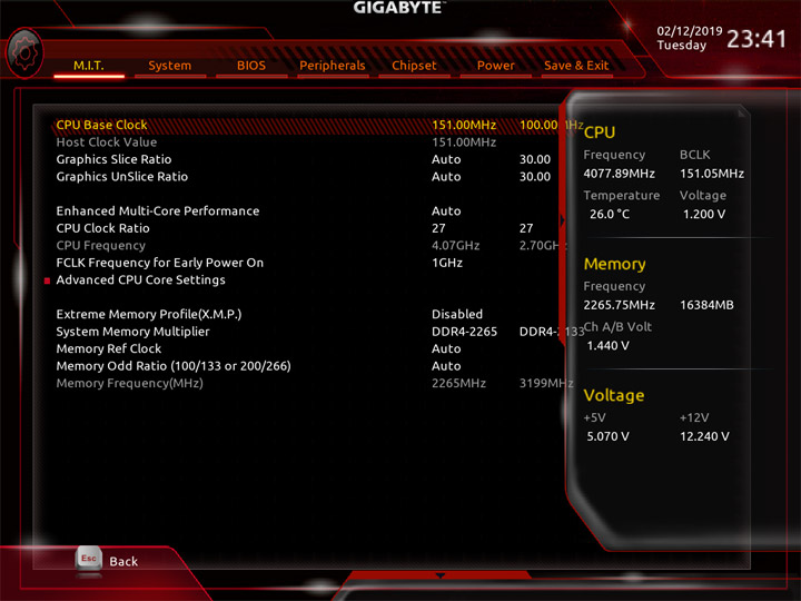 Не было особого смысла в испытаниях профиля из EasyTune, сулящего 5,2 ГГц,. Поэтому я перешёл к ручному разгону, первый этап — предельное повышение BCLK. Прежде, с продуктами прошлого поколения (на базе Z370), были определённые трудности на этом этапе, но нынешнее поведение не идёт с тем опытом ни в какое сравнение. Использование минимальных множителей для ЦП и ОЗУ на этой стадии оказалось плохой идеей, с ними я не достиг и 115 МГц. Переход к более высоким, образующих в итоге близкие частоты к обычным, дало больше плодов. Итогом экспериментов стала величина 151 МГц! Это небывало низкая отметка, сложилось впечатление не сработавшего страпа, но ведь его и нет (как это было прежде, в более возрастных продуктах). Но и это ещё не всё. Прежний характер плат Gigabyte проявился во всей красе. При неудачной отработке процедуры POST (в следствие «переразгона») происходит самостоятельное переключение на резервную микросхему с прошивкой, что неопытному пользователю отследить непросто ввиду всячески отсутствующих оповещений. Лучше всего помогают ориентация про проведённым установкам (которые не сбрасываются даже в случае неудачного пуска) и набор сохранённых профилей с настройками, он разный для каждой из двух микросхем. Для очередного переключения (возврата) потребуется указать заведомо непосильный режим работы платы, например, завысив ту же базовую частоту больше 400 МГц. Словом, на этом этапе количество шагов, требуемых для успеха, увеличивается многократно. Для небольшого отклонения от 100 МГц явных проблем не возникает и это, выходит, естественный способ для внятной работы с BCLK на такой плате.