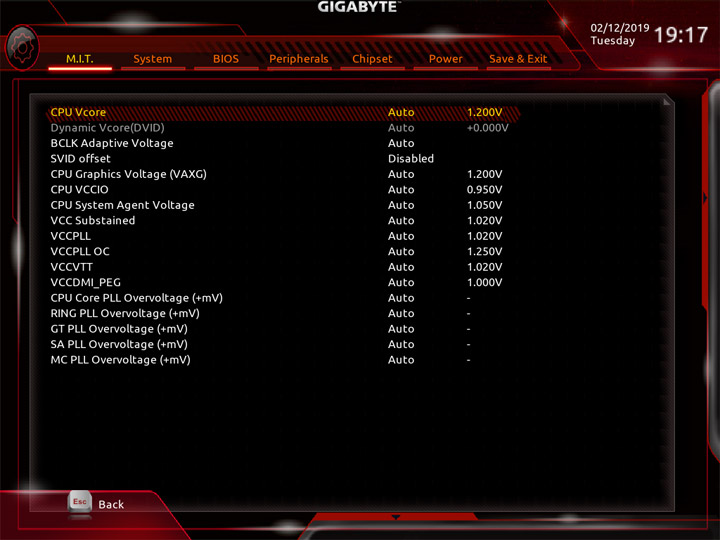 При разгоне памяти получилось выйти на уже проверенную схему, выверенную при обзорах других устройств, — 4000 МГц в комбинации со схемой задержек 16-17-17-31-2Т, несложные тесты успешно завершались и при бо́льших отметках частоты, но проверка посредством LinX требовала напряжения DRAM больше, чем 1,5 В, а так удалось стабилизировать систему при 1,45 В. CPU IO и SA вышли равными 1,15 В, чего было достаточно. В этот раз я не ставил вручную профиль для LLC, чтобы дополнительно изучить самостоятельное поведение платы.