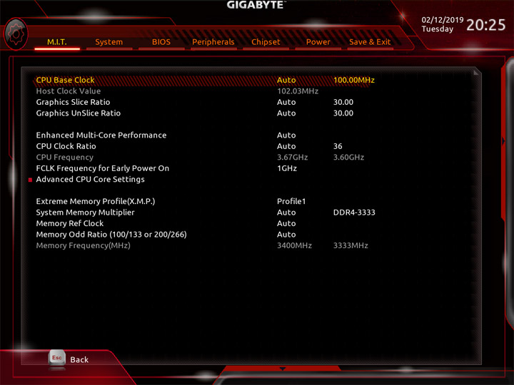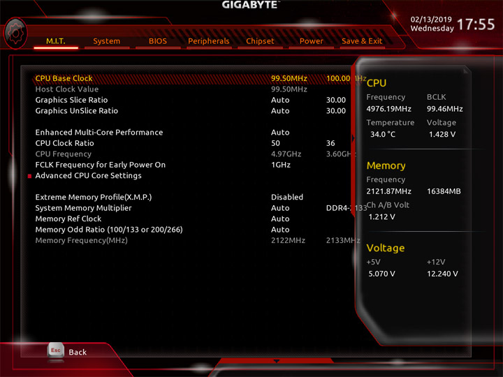 Активация XMP обнажила интересный подход к организации работы ПК. Базовая частота оказалась повышена до 102 МГц, тогда как множитель ОЗУ принимался меньшим от требуемого на единицу, тем самым достигалась искомая величина (для нашего набора памяти — 3400 МГц). Формула работы ЦП не менялась, таким способом, он также разгонялся на 2%. Рост напряжения IO проконтролировать программным способом невозможно, с SA, как и всегда, отмечался возросший уровень — до 1,3 вольт (на этот раз).