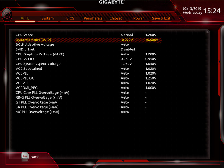 На очереди поиск необходимой величины для стабилизации поведения процессора в пятикратном проходе сценария Cinebench с частотой, равной 5,1 ГГц. В отличии от продуктов других производителей, напряжение CPU потребовалось корректировать в сторону уменьшения! Отрицательный уровень offset составил 70 мВ.