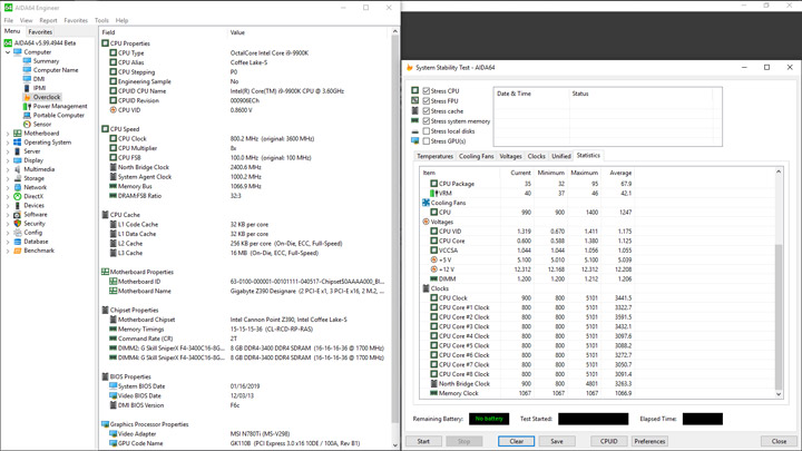 - процессор: Intel Core i9-9900K (3,6 ГГц);