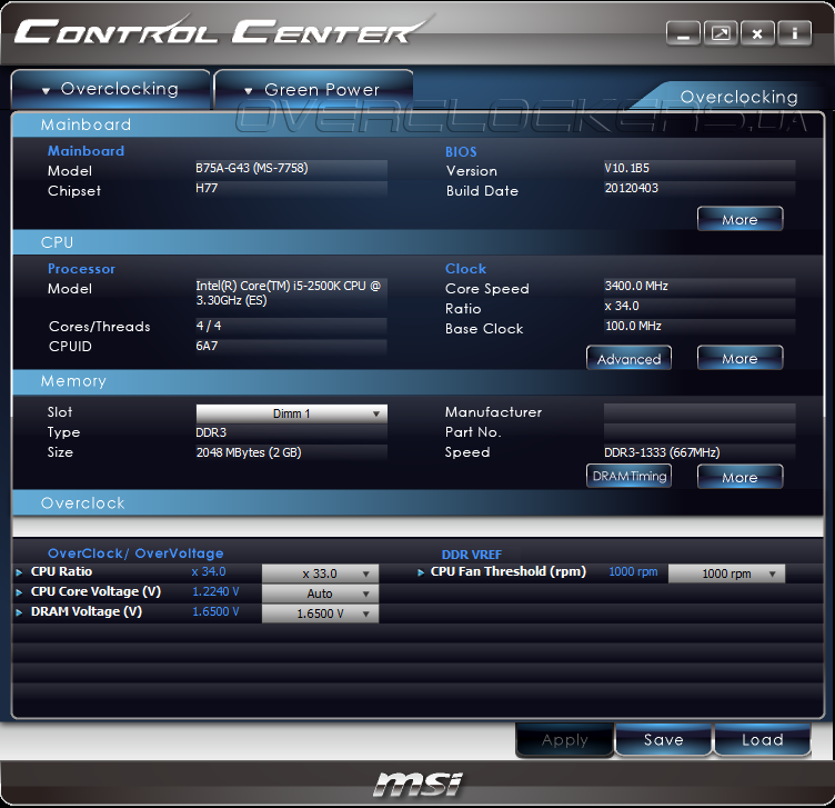 Вместе с материнской платой MSI B75A-G43 пользователь получает несколько интересных приложений, на которые мы рекомендуем обратить ваше внимание. Прежде всего, это касается программного обеспечения MSI Control Center, который предназначен для управления параметрами быстродействия и контроля состояния системной платы. Функциональность данной программы была подробно изучена во время недавнего обзор системной платы MSI Z77A-GD65, правда, в нашем случае возможности разгона ограничены спецификациями набора системной логики.