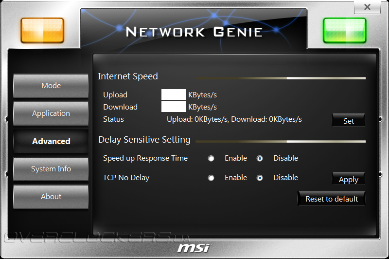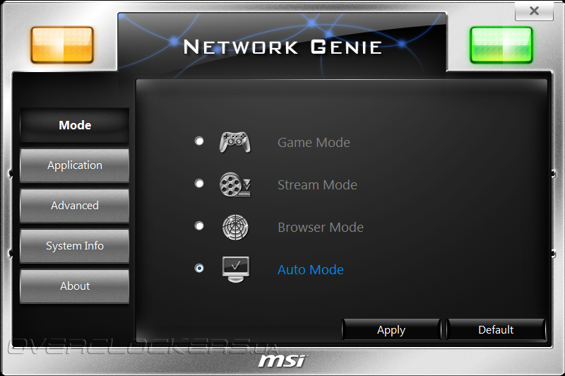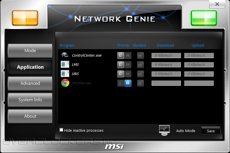 Два следующих программных продукта — MSI Network Genie и Intel Small Business Advantages ранее не попадали в поле зрения нашей лаборатории, так что пару слов следует сказать и о них. Первое приложение предназначено для управления сетевым подключением и контроля над трафиком. Программное обеспечение Network Genie имеет несколько режимов работы, согласно которым приоритет пропускной способности отдается соответствующим аппликациям. Также доступен автоматический режим, который самостоятельно управляет параметрами сетевого доступа.