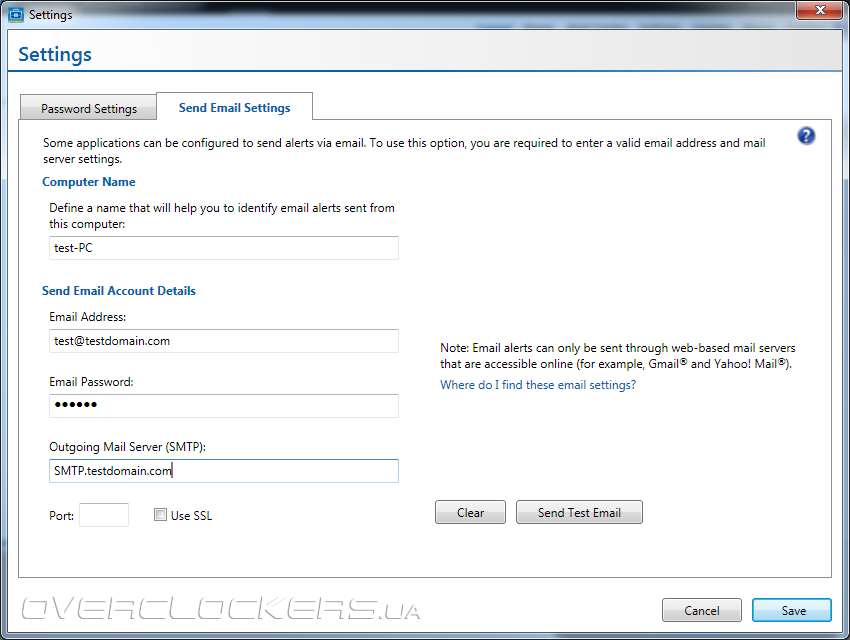 Все настройки программы Intel Small Business Advantages защищаются паролем, который исключает несанкционированное вмешательство в работу ПО. Также можно настроить оповещение системного администратора о критических событиях по e-mail, чтобы тот вовремя отреагировал на развитие проблем и принял соответствующие меры.