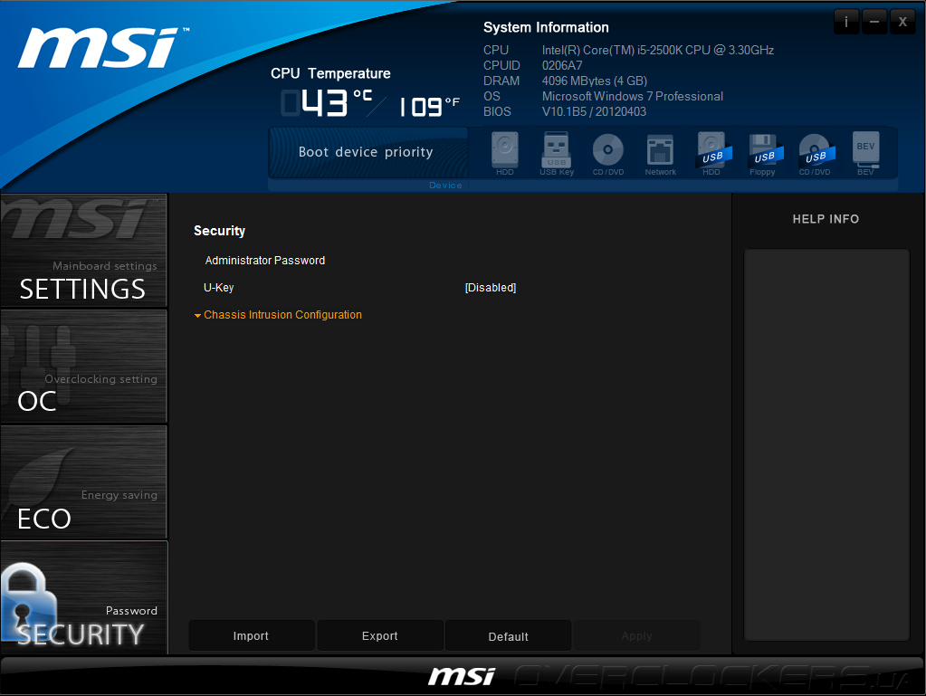 Таким образом, UEFI материнской платы MSI B75A-G43 предлагает полный набор инструментов для тонкой настройки и оптимизации производительности. Ограниченные возможности разгона в данном случае не зависят от разработчиков прошивки, а диктуются применением чипсета Intel B75 Express.
