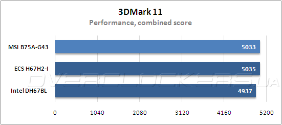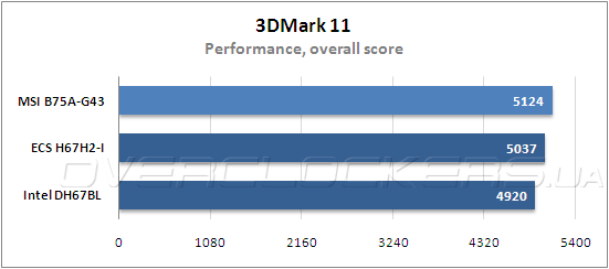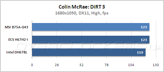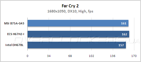 Как и в предыдущем случае, MSI B75A-G43 победила в общем зачете, но преимущество над эталонной платой Intel DH67BL составило всего 4%, что вряд ли отразится на комфортности игрового процесса.