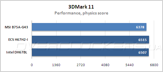 Детальный анализ результатов показывает, что героиня сегодняшнего тестирования особенно хороша в графических сценариях. Результаты в комбинированной нагрузке одинаковы для всех трех соперниц, а вот при моделировании физических эффектов MSI B75A-G43 отстала от двух других системных плат. Похоже, уровень продуктивности новинки «плавает» из-за сырости управляющего микрокода.