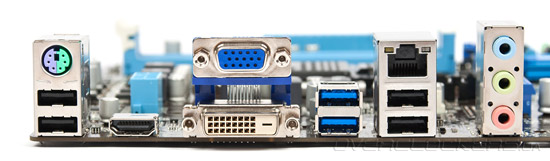 Как вы помните, чипсеты Intel Express 7-й серии получили долгожданную поддержку третьей версии универсальной последовательной шины. Это позволило разработчикам ASUS P8H77-M LE оснастить плату четырьмя разъемами для подключения устройств USB 3.0 без использования дополнительных контроллеров. В дополнение к этому «материнка» располагает 10 портами USB 2.0, четыре из которых выведены на заднюю панель, а остальные шесть можно подключить к игольчатым контактам, расположенным на печатной плате. За работу сетевого порта Gigabit Ethernet отвечает контроллер Realtek RTL8111E, а основе звуковой подсистемы лежит восьмиканальный HD-аудиокодек Realtek ALC887. На задней панели системной платы ASUS P8H77-M LE можно найти: