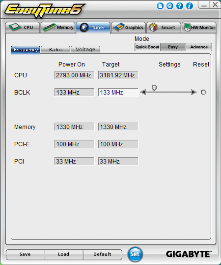 Самое же интересное для нас приложение комплекса Smart 6 — Smart QuickBoost. На самом деле при нажатии на эту кнопку осуществляется переход к одной из вкладок Easy Tune 6. А вот уже эта программа предлагает комплексный мониторинг системы и возможности как для автоматического, так и для «ручного» разгона.