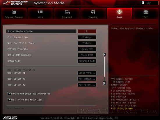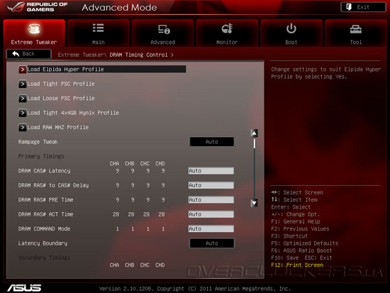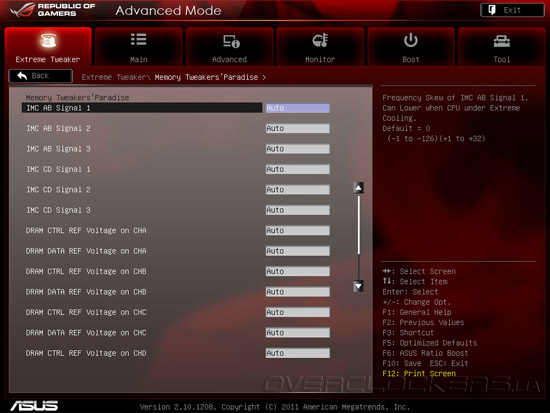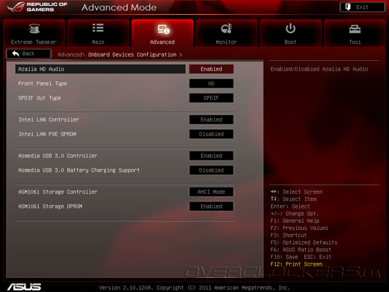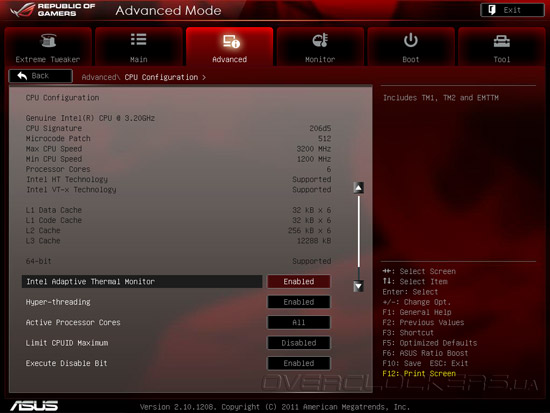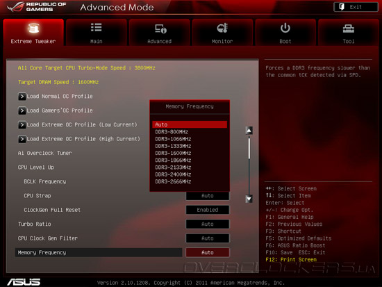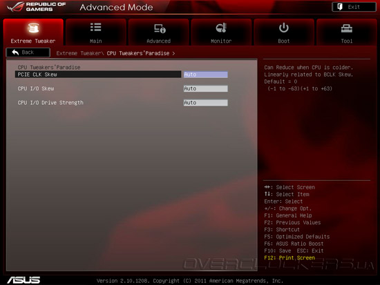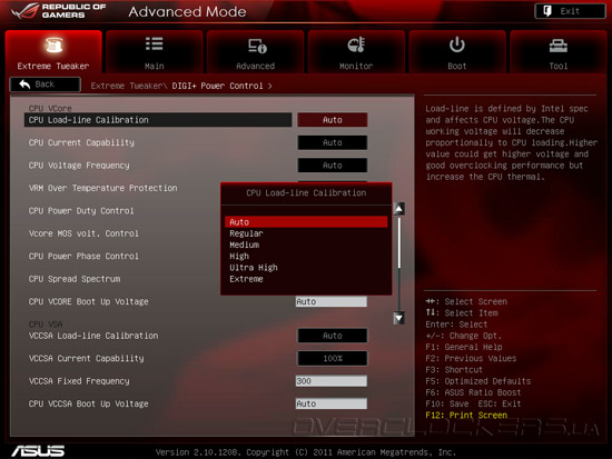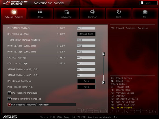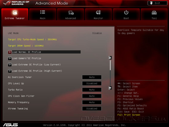 Как известно, для достижения высоких результатов в процессе разгона, помимо эффективной системы охлаждения и качественной системы питания, не менее важным фактором является наличие проработанной прошивки с удобным интерфейсом и достаточным количеством всевозможных настроек. Для ASUS Rampage IV Formula разработчики заявляют о применении специальной версии микрокода, предлагающей широчайшие возможности для настройки и оптимизации разнообразных параметров и технологий.