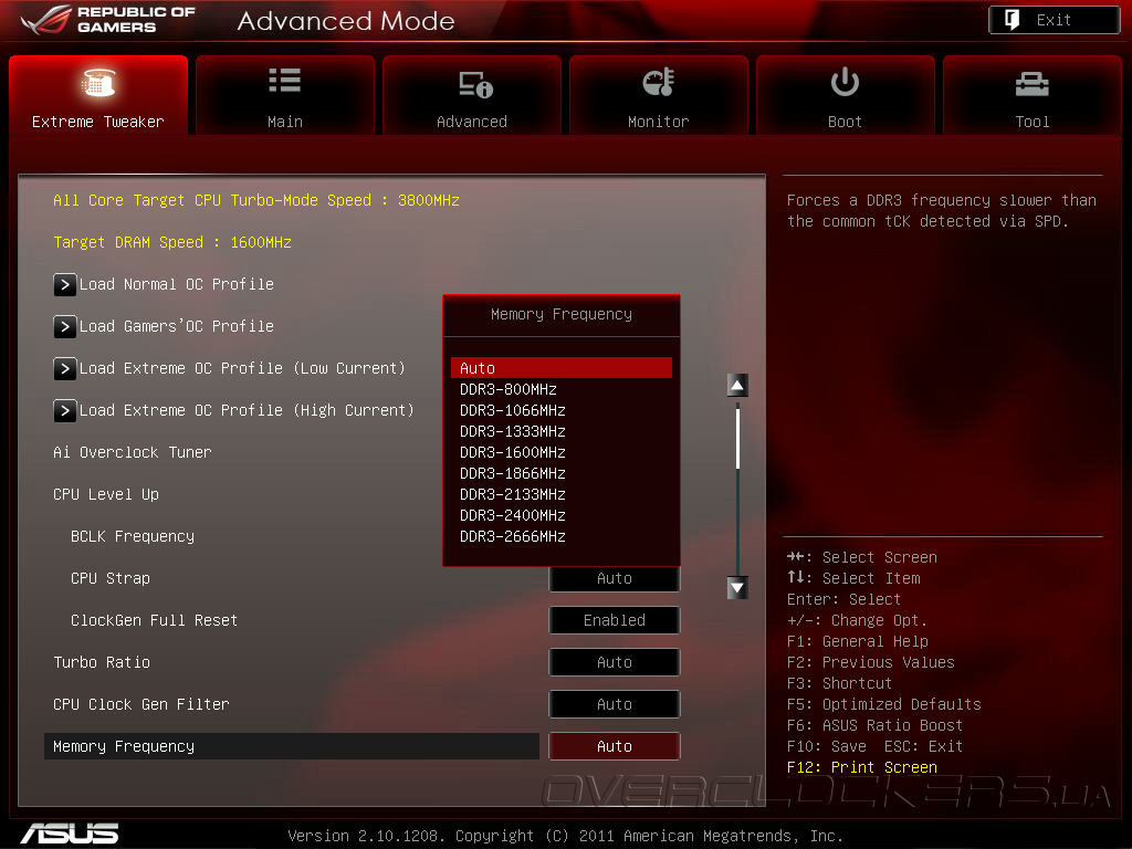 - выбрать частоту работы оперативной памяти (1066/1333/1600/1866/2133/2400/2666 МГц);