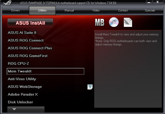 От рассказа о возможностях UEFI перейдем к изучению набора фирменного программного обеспечения, которое поставляется вместе с Rampage IV Formula. На диске из комплекта материнской платы, помимо драйверов и дополнительных мультимедийных программ, присутствуют полезные утилиты, которые будут интересны как продвинутым пользователям, так и новичкам.
