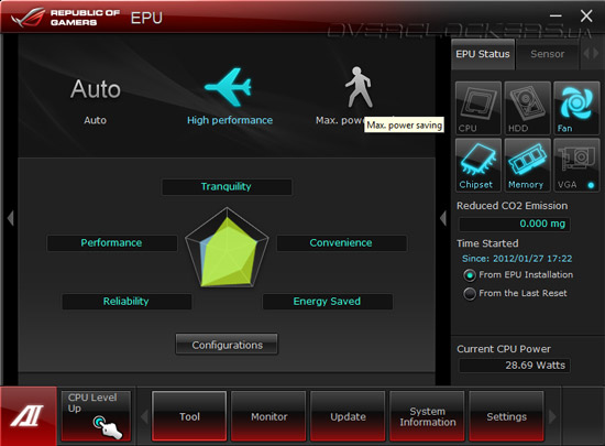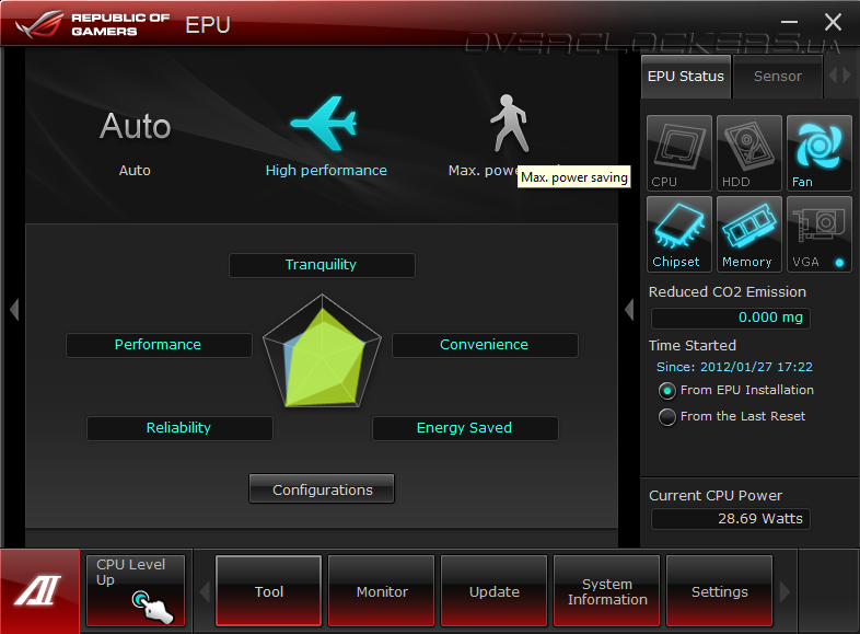 - настроить режим работы энергосберегающей технологии EPU Power Saving;