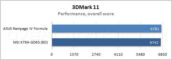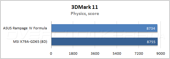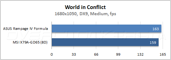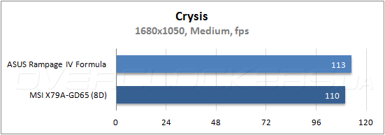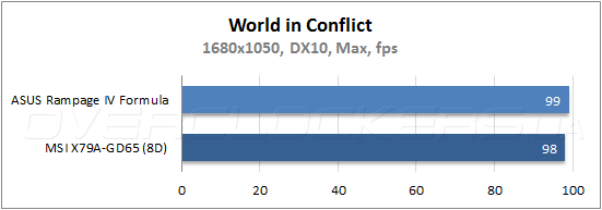 В игровых приложениях и графических бенчмарках разница между двумя решениями снова свелась к минимуму, но, всё же, одержав победу в четырех тестах из шести, лидерство удалось удержать ASUS Rampage IV Formula. Стоит отметить, что в процессе обычной эксплуатации заметить разницу между протестированными решениями невооруженным взглядом будет практически невозможно, однако в профессиональном оверклокинге даже несколько процентов могут отделять первое место от второго, поэтому преимущество ASUS Rampage IV Formula в некоторых случаях может стать решающим.