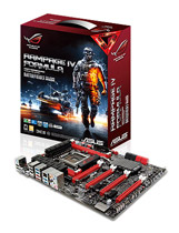 Картонная коробка, в которой поставляется ASUS Rampage IV Formula, выполнена в форме небольшого чемоданчика. Открыв верхнюю крышку, пользователь может осмотреть продукт находящийся внутри через прозрачное пластиковое окошко, а также ознакомится с описанием некоторых технологий, поддерживаемых платой.