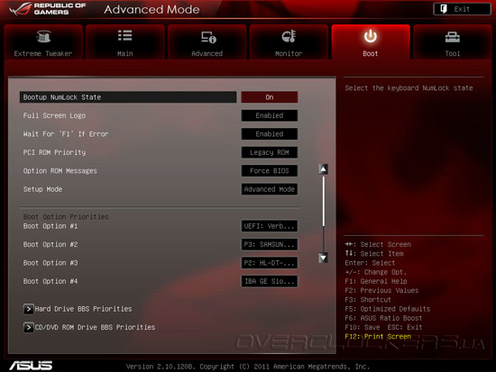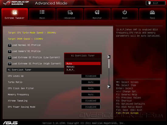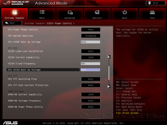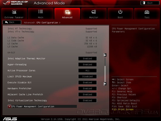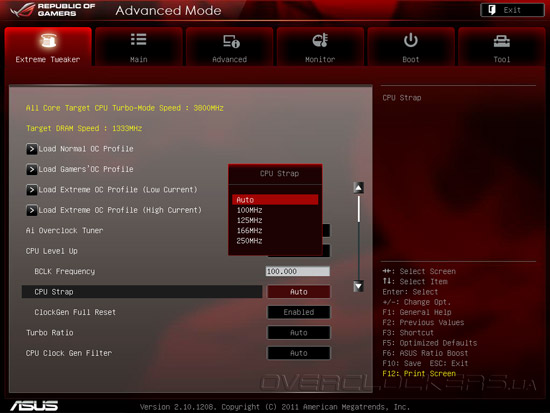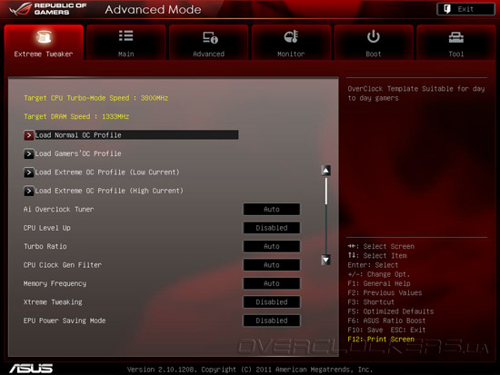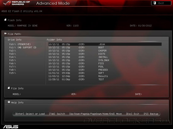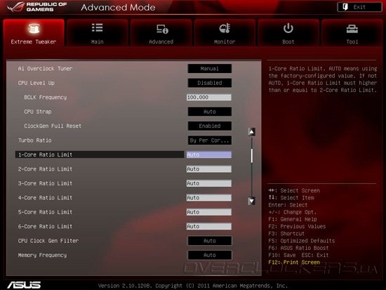 Как известно, для успешного разгона энтузиастам требуется не только мощная подсистема питания и эффективное охлаждение. Во многом успешность оверклокинга зависит от гибкости настроек BIOS и в этом плане ASUS Rampage IV Gene выгодно отличается от конкурирующих решений благодаря использованию «продвинутой» версии микрокода, разработанной специально для материнских плат ASUS серии ROG.