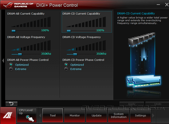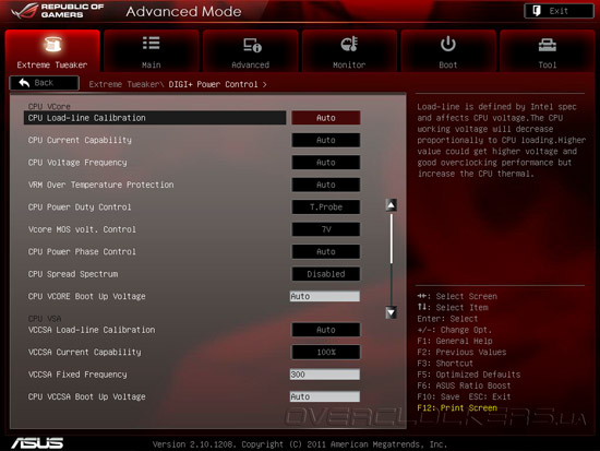 В меню с названием Digi+ Power Control собрана большая часть настроек, которые касаются функций энергосбережения, динамического переключения фаз и компенсации просадки напряжений питания процессора и оперативной памяти в процессе разгона. Начинающим пользователям с этой вкладкой экспериментировать мы бы не советовали.