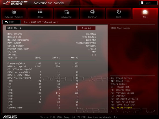 - ASUS SPD Information для просмотра детальной информации об установленных модулях ОЗУ;