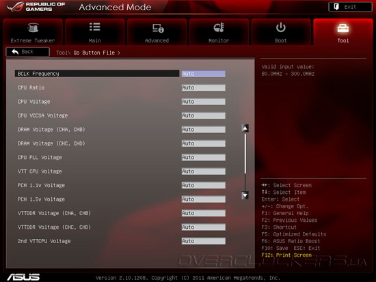 В меню Go Button File можно выставить значения всех основных параметров разгона, которые будут активированы после нажатия соответствующего переключателя на текстолите платы.