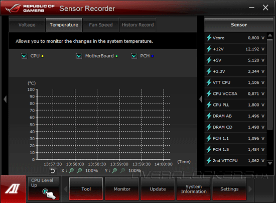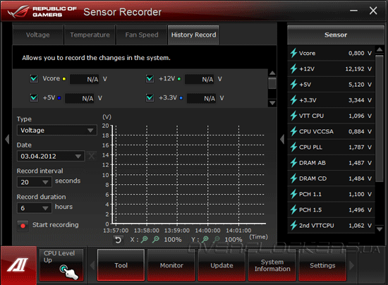 Опция Sensor Recorder может пригодиться оверклокерам для длительного мониторинга изменения значений температуры, напряжения или скорости вращения вентилятора, а также записи изменений в лог-файл.