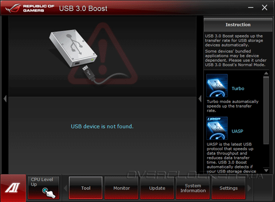 По словам разработчиков, фирменная утилита ASUS USB 3.0 Boost позволяет ощутимо улучшить скорость работы подключенных к Rampage IV Gene устройств с поддержкой этого протокола.
