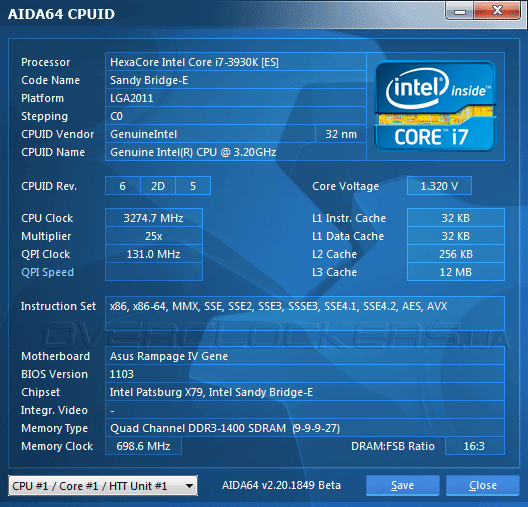 - процессор: Core i7-3930K (3,2 ГГц, 12 Мбайт кэш L3);