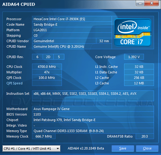 - Полностью ручной оверклокинг принёс еще более внушительный результат. В то время как большинство материнских плат на базе Intel X79 Express, которые побывали в нашей тестовой лаборатории, были способны разогнать тестовый ЦП лишь до частоты 4,4 ГГц, ASUS Rampage IV Gene позволила достичь отметки 4,7 ГГц, что является отличным показателем. Значение Vcore при этом составило 1,482 В, VTT — 1,1 В, SA — 0,95 В, PLL — 1,9 В. К сожалению ручной разгон автоматически приводит к отключению энергосберегающих функций и напряжение на CPU не сбрасывается в простое. Также стоит отметить, что процессорный множитель необходимо прописывать для каждого ядра отдельно.