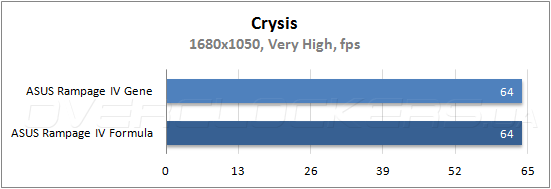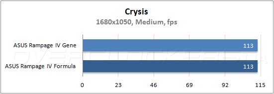 В игровых приложениях и бенчмарке 3DMark 11 обе платы ожидаемо продемонстрировали практически идентичные результаты, а небольшую разницу можно отнести к погрешностям измерений. Разумеется, на практике заметить разницу между Rampage IV Gene и старшей моделью в линейке ROG будет практически невозможно.
