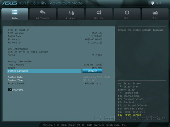 При внешнем осмотре материнской платы ASUS Sabertooth X79 мы убедились, что инженеры ASUS оснастили этот продукт всем необходимым, для того чтобы опытные пользователи имели возможность достичь высоких результатов в процессе разгона. Однако не будем забывать, что успех оверклокинга во многом зависит и от того, насколько удачной окажется прошивка системной платы, и какие возможности она предоставляет.