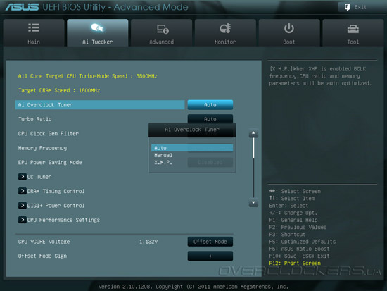 - воспользоваться авторазгоном, выставив один из профилей XMP или активировав функцию OC Tuner;