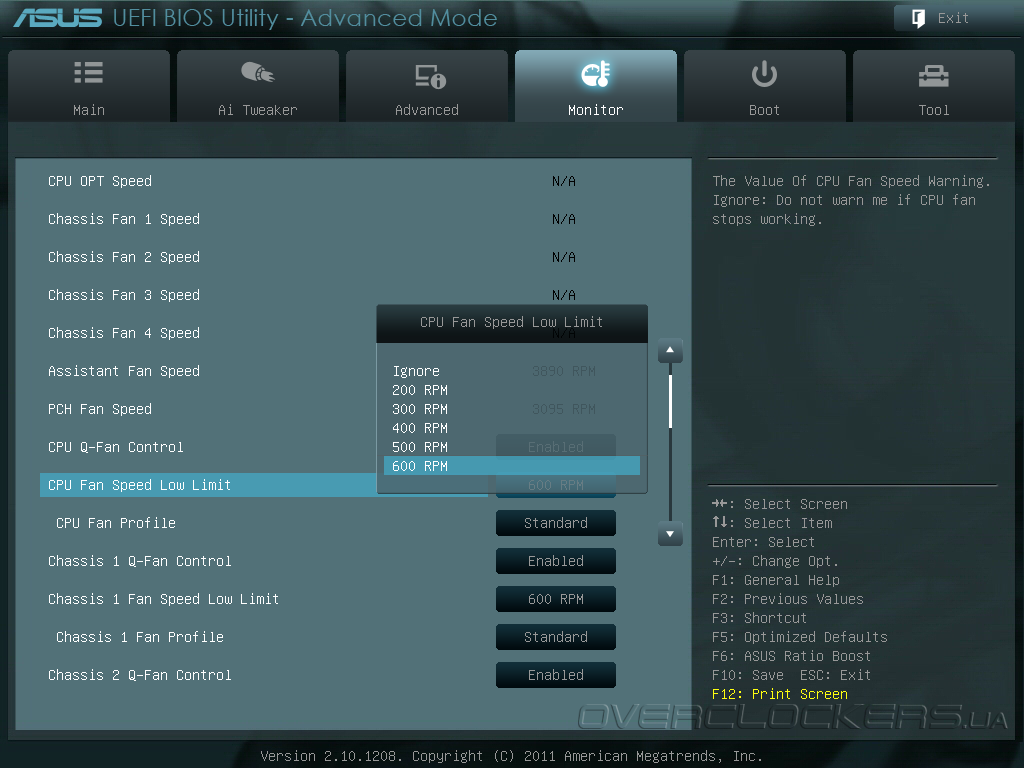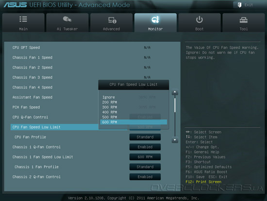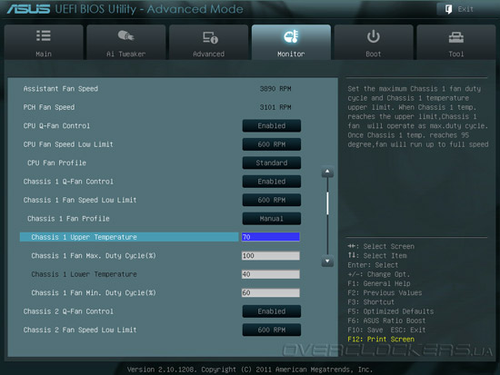 Раздел Monitor позволяет не только осуществлять мониторинг основных системных температур и напряжений на линиях +3,3 В, +5 В, +12 В, но и управлять подключенными к плате вентиляторами. «Вертушкам» можно вручную задать скорость вращения, активировать один из трёх режимов (Turbo, Standard, Silent) или же установить зависимость скорости вращения от температуры того или иного термодатчика.