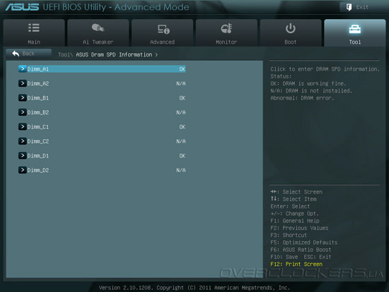 Наконец, последний раздел UEFI под названием Tool включает в себя утилиту для обновления микрокода платы под названием ASUS EZ Flash Utility, «обнаружитель» установленных модулей ОЗУ, а также меню с оверклокерскими профилями, которых всего можно создать до 8-ми.