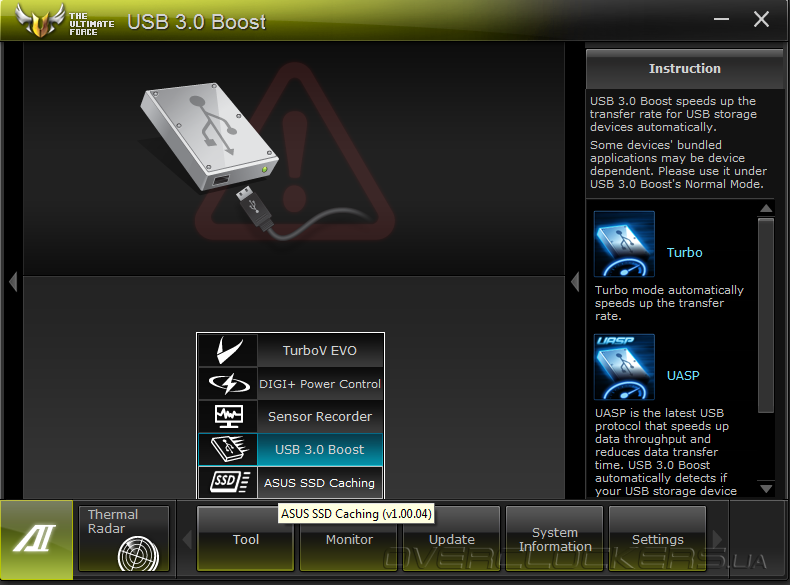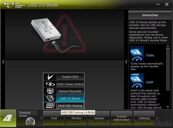 Кроме этого, с помощью ASUS Ai Suite II можно активировать фирменные технологии ASUS, поддержкой которых обладает ASUS Sabertooth X79, — USB 3.0 Boost и ASUS SSD Caching.