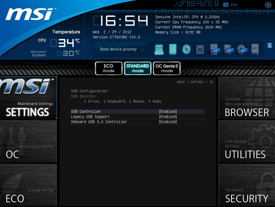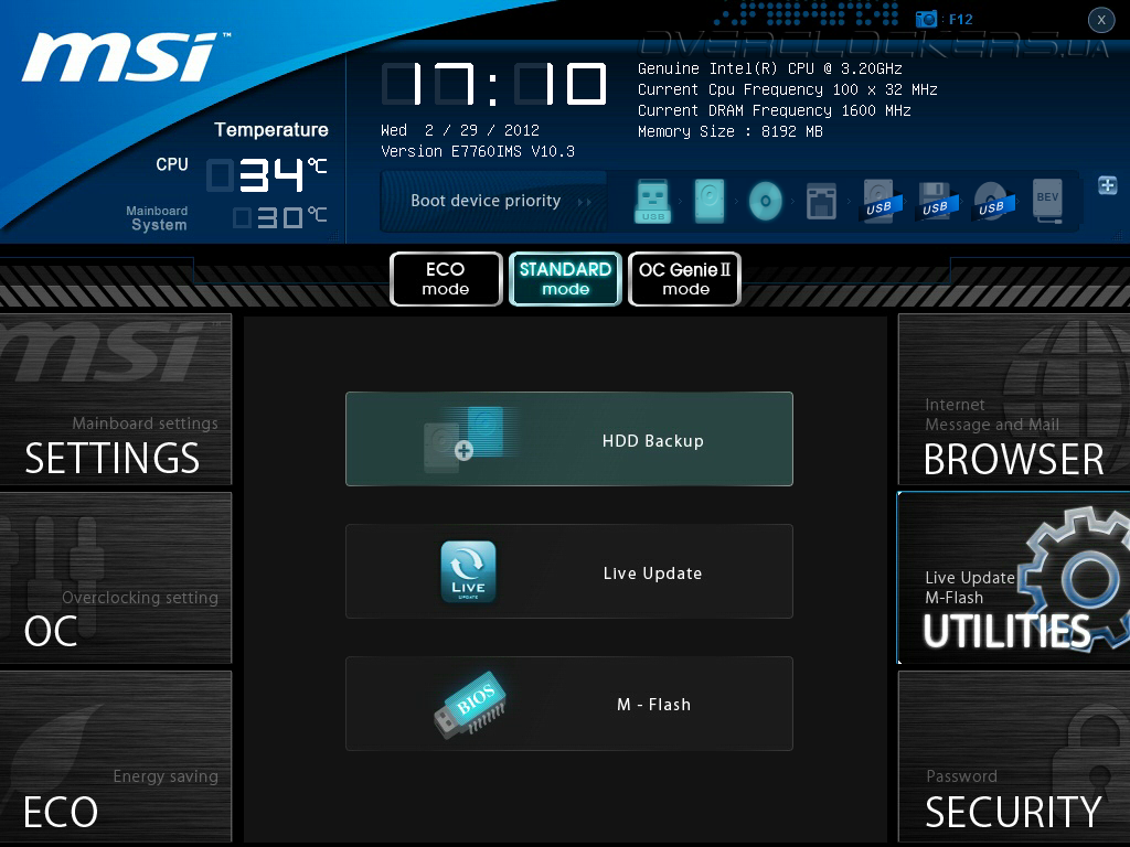 - небольшая программа M-Flash позволяет обновить версию BIOS с помощью USB накопителя.