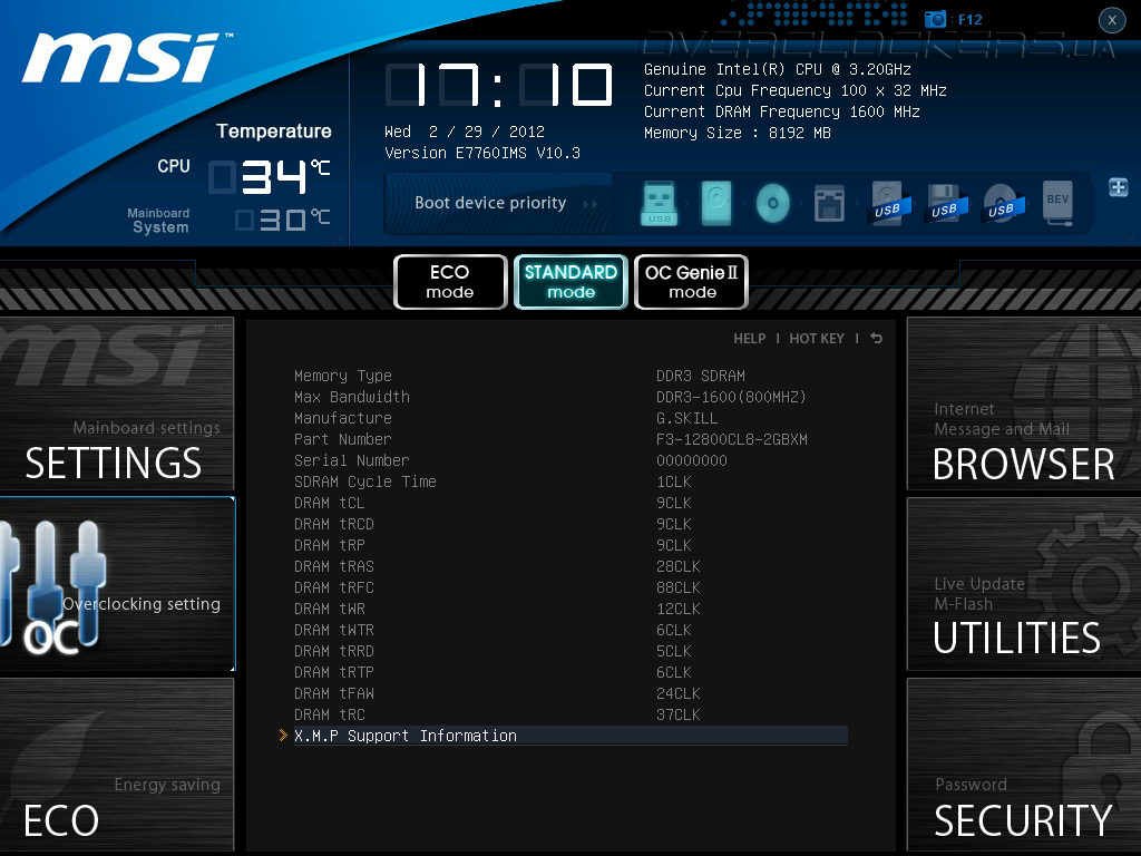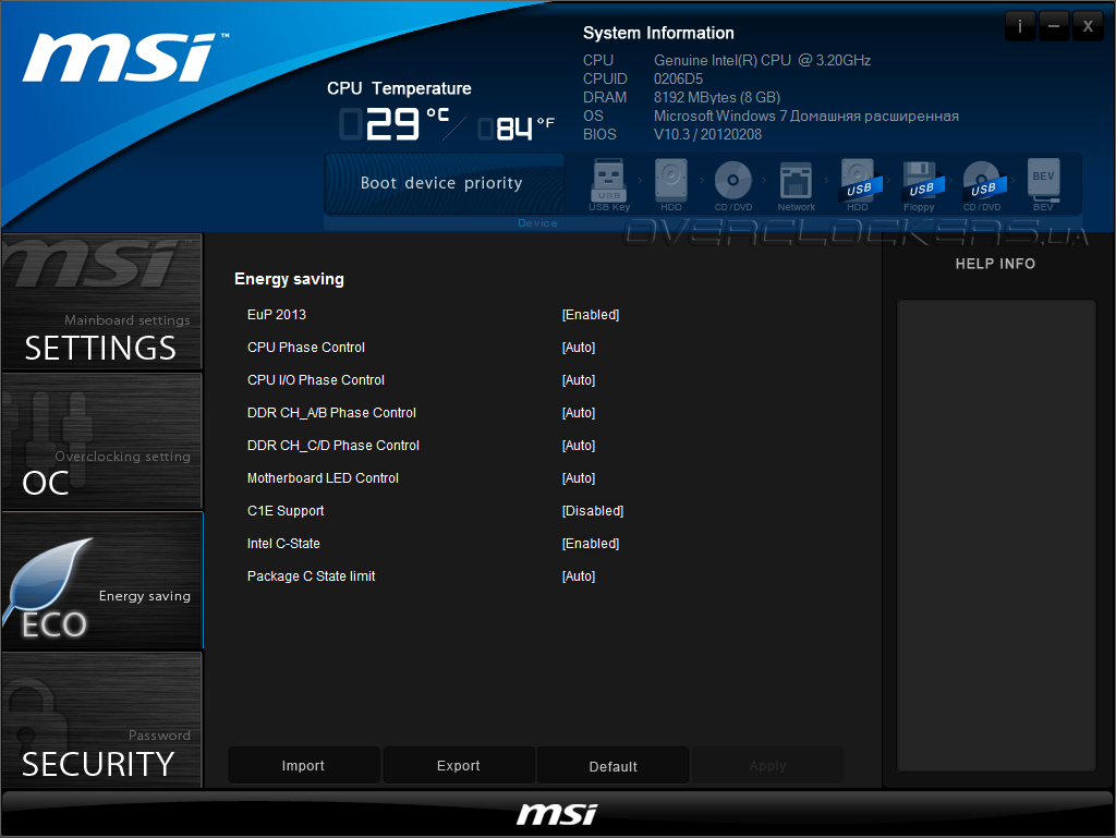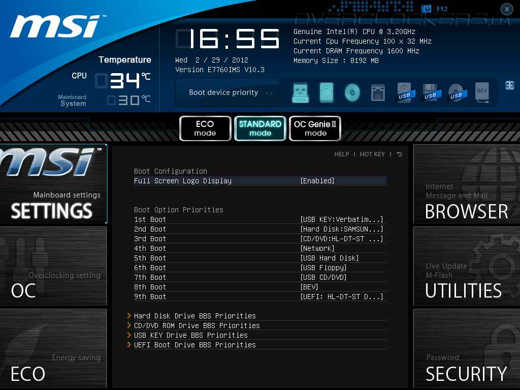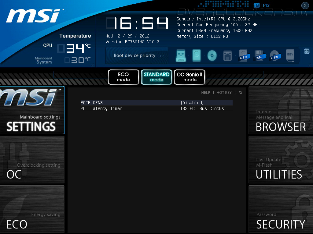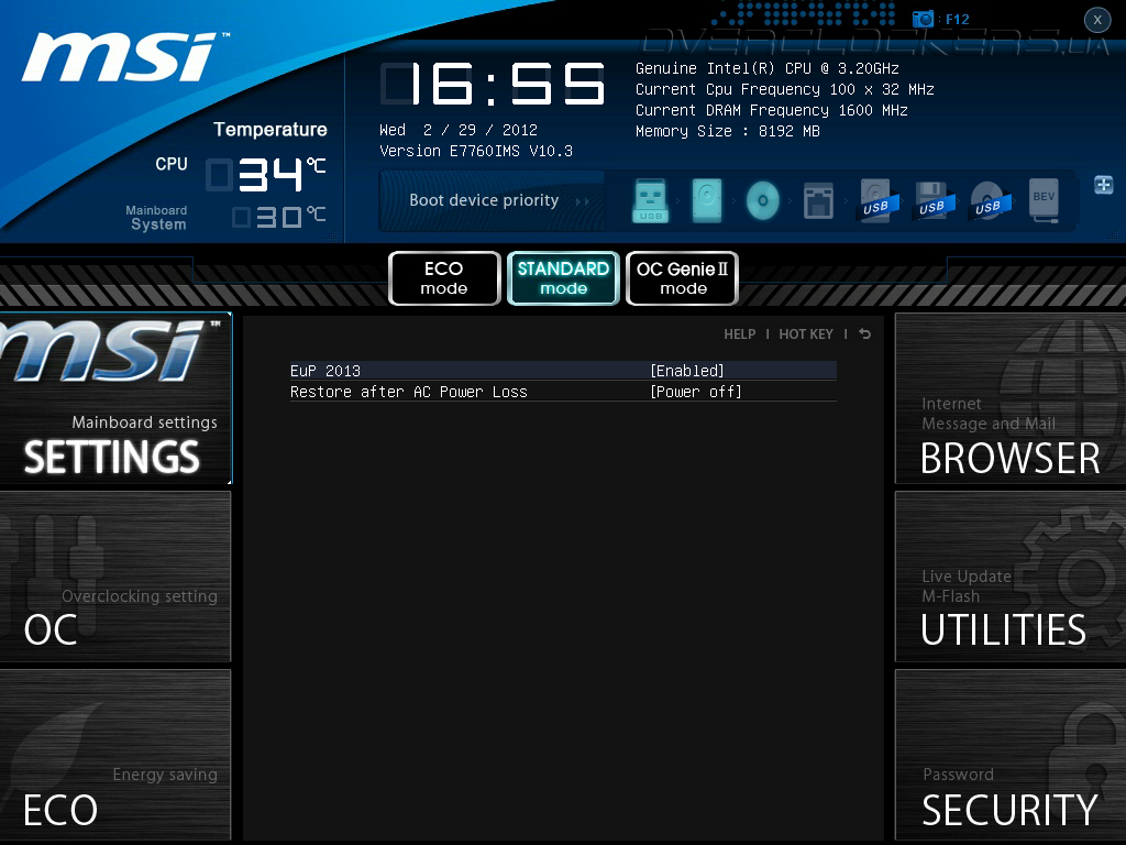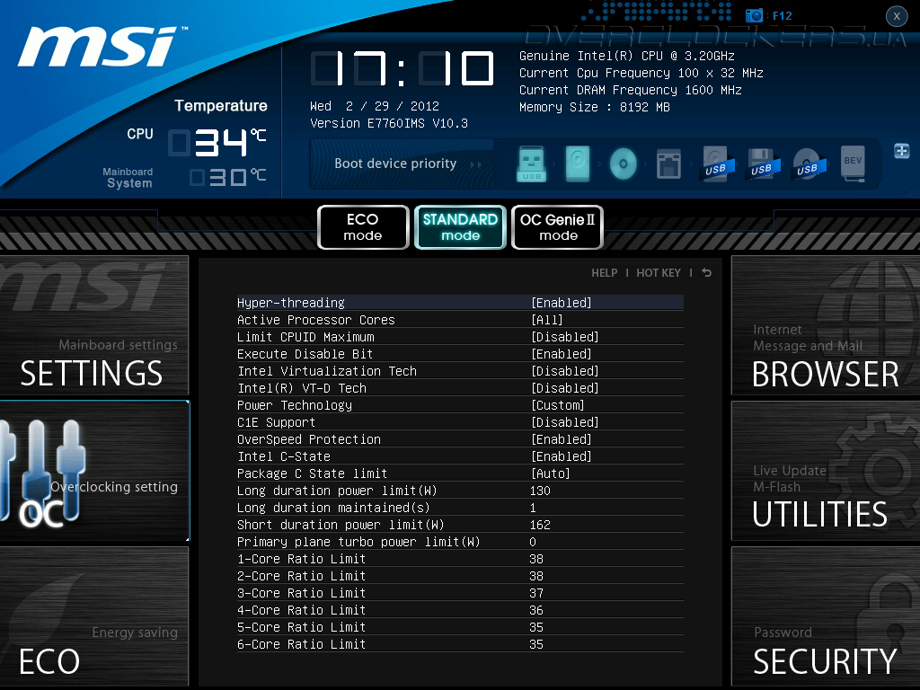 В целом возможности UEFI материнской платы MSI X79A-GD45 (8D) находятся на уровне аналогичных решений формата ATX, без каких либо существенных ограничений. Это позволит опытным и начинающим пользователям осуществить не только тонкую настройку системы, но и умеренный разгон.
