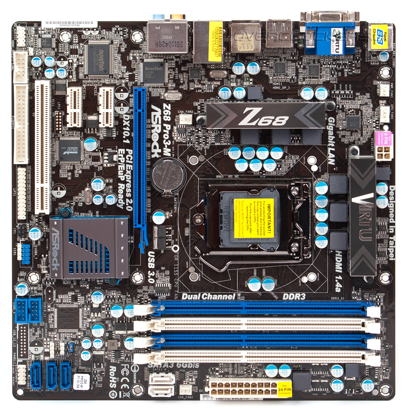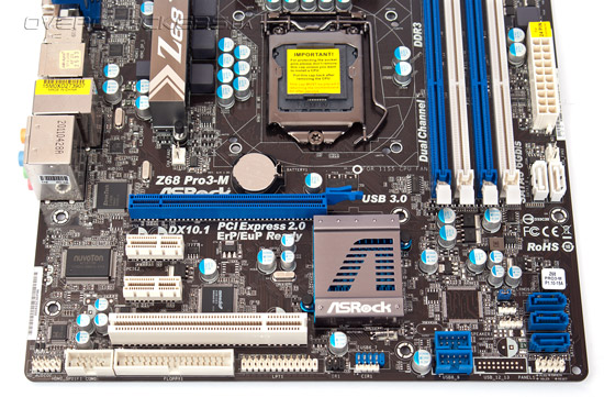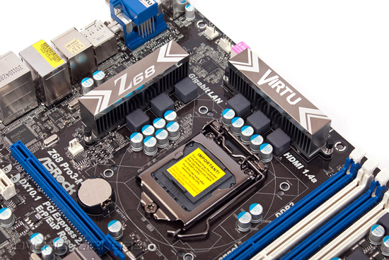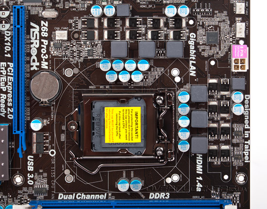 Ее суть состоит в том, что на текстолите ASRock Z68 Pro3-M присутствую монтажные отверстия как для систем охлаждения под LGA1155, так и для LGA775. Таким образом, переходя на новую платформу можно не переживать о замене кулера или креплений, которые часто бывает просто проблематично найти.