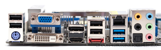 Внешний осмотр системной платы мы традиционно закончим изучением задней панели ввода вывода, которая включает: