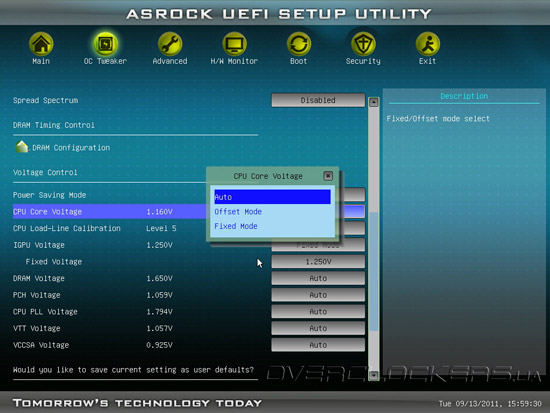 Для достижения стабильности в таком режиме работы, плата автоматически поднимала напряжение на CPU в режиме нагрузки до 1,376 В, что не превышает максимально безопасные 1,4 В. Приятной особенностью такого разгона является способность материнской платы автоматически понижать напряжение на ЦП в режиме простоя. После ручного изменения значения напряжения питания, эта функция становится недоступной.