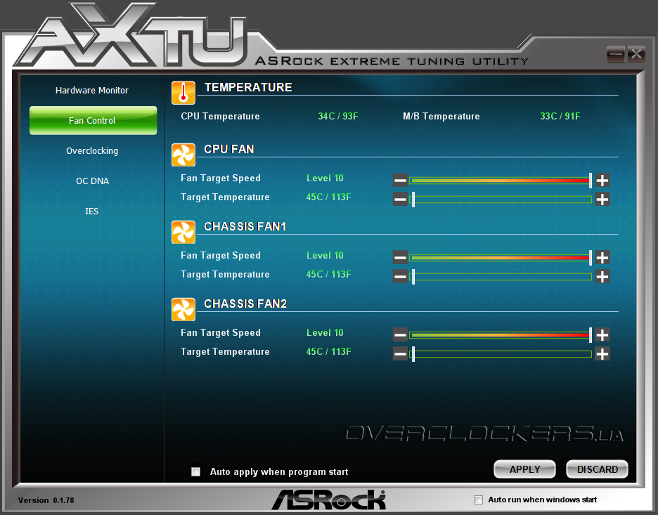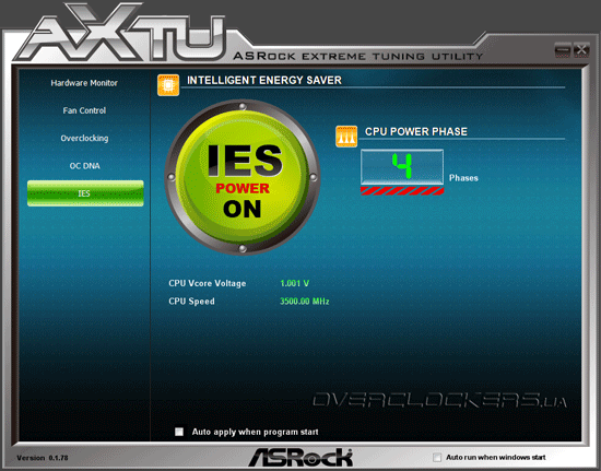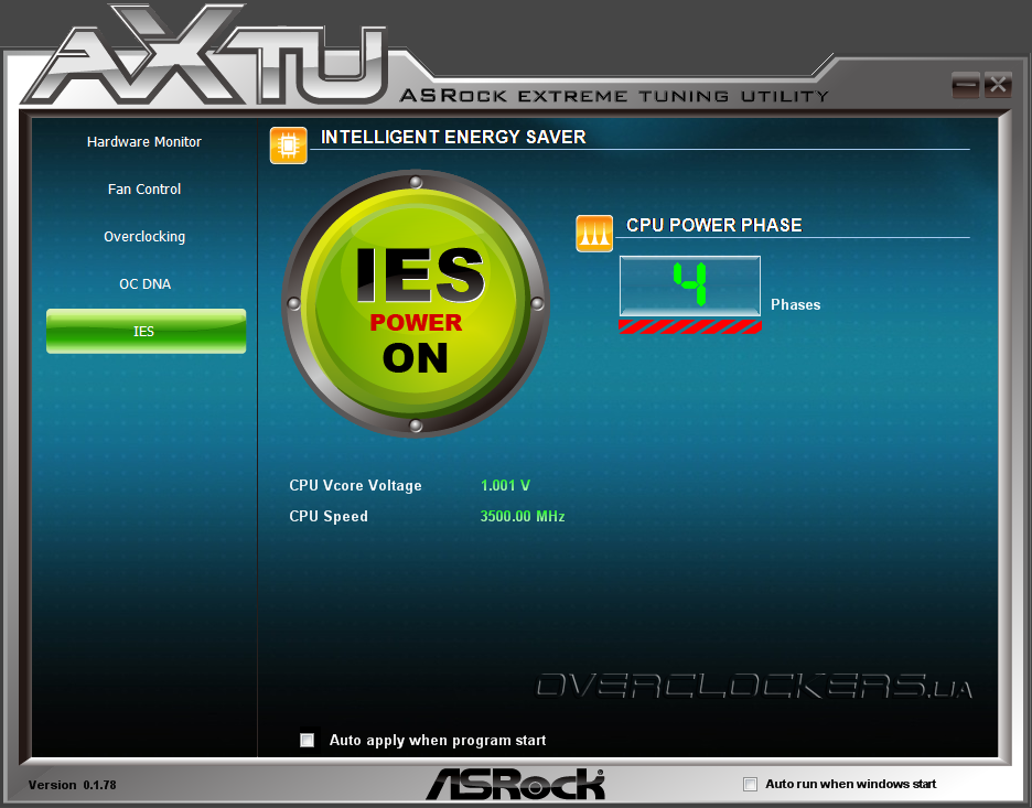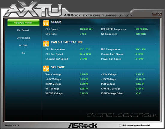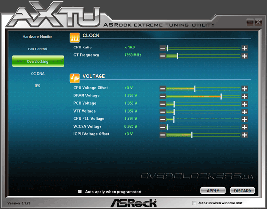 Первая из них носит название ASRock Extreme Tuning Utility.Она предоставляет пользователю осуществлять разгон центрального процессора, памяти и графического ядра, управлять энергосберегающими функциям и подключенными вентиляторами, не выходя из операционной системы. Несмотря на то, что многим пользователям такой метод покажется более удобным, мы бы рекомендовали осуществлять настройку и разгон системы посредством оболочки UEFI.