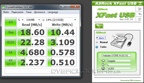 На практике с помощью накопителя Verbatim Store’n’Go объемом 16 ГБ мы еще раз убедились, что прирост производительности для устройств с интерфейсом USB 2.0 составляет не более 25%, что, несколько меньше чем обещал производитель (почти 400%), но тоже совсем неплохо.